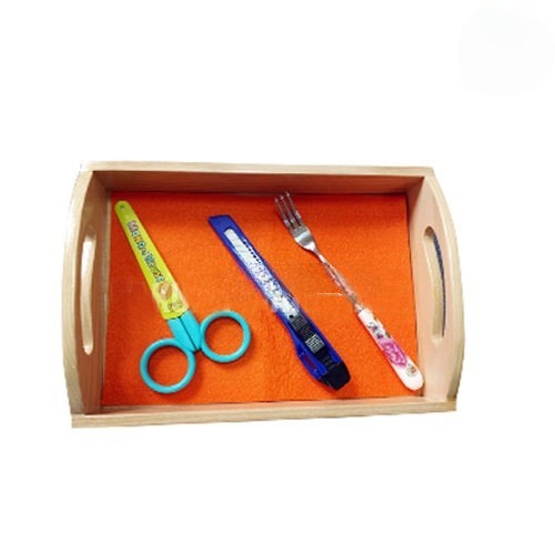 Giáo cụ montessori bài học cách cầm kéo, dao, dĩa đưa cho người khác.