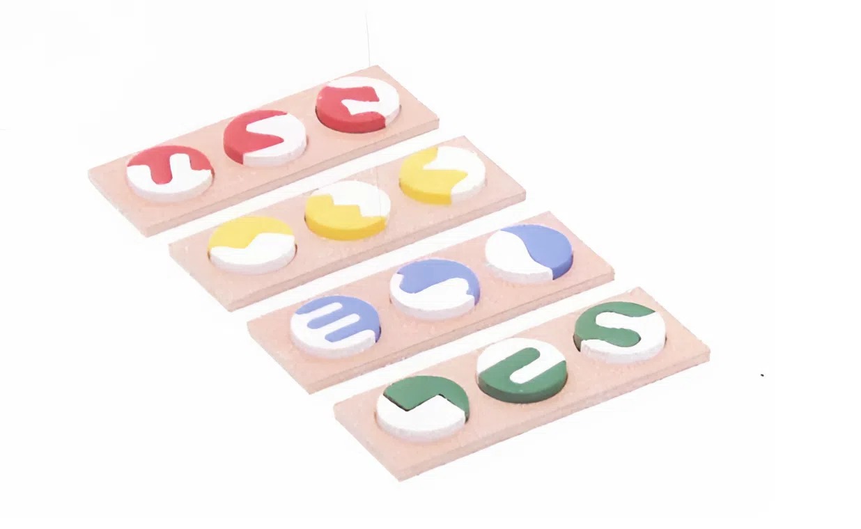 Giáo cụ bộ ghép hình tròn (4 hình khác nhau) giúp tạo cho trẻ khả năng nhận biết các hình dáng và màu sắc khác nhau, giúp trẻ phát triển tư duy so sánh và phát triển giác quan.