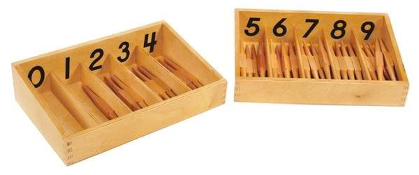 Tạo thành hai trong cùng một phong cách của hộp gỗ và 45 que tính. Mỗi hộp gỗ được chia thành năm ngăn được cung cấp theo thứ tự in của số. Một mặt là 0-4, ở phía bên kia 5-9.