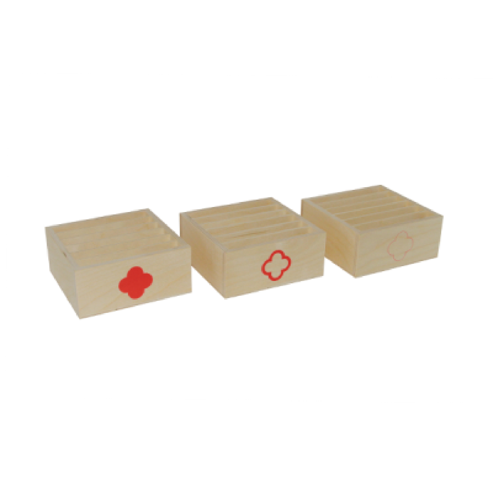 Hộp sáu ngăn và Thẻ hình học, màu đỏ, bộ 3