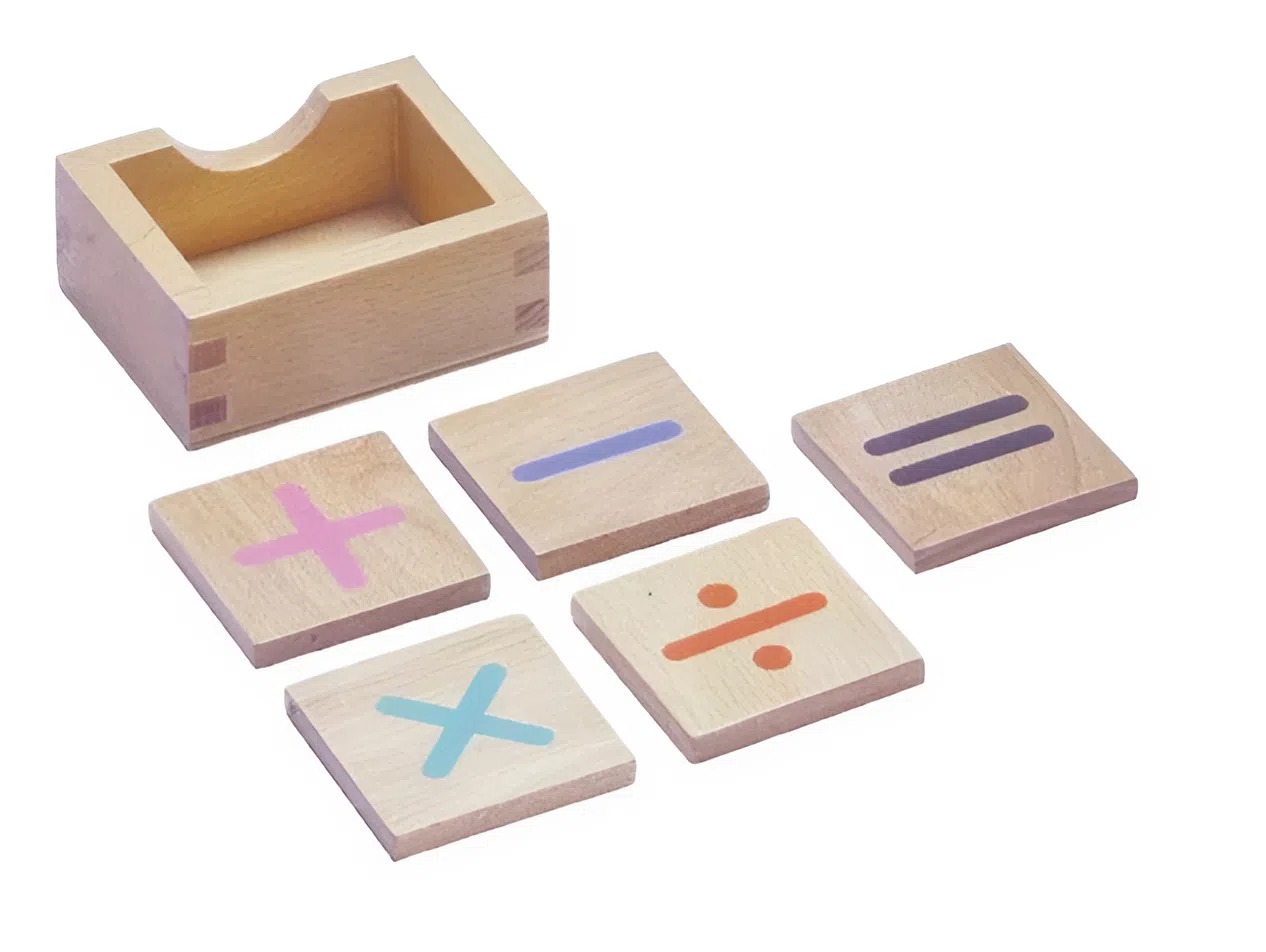 Bộ giáo cụ montessori kí hiệu dấu các phép tính – Tính giáo dục được lồng ghép vào những sản phẩm đồ chơi của trẻ nhỏ luôn được để cao tính hiệu quả, hơn hẳn sự gò bó trong những buổi học nhàm chán vẫn diễn ra giữa bố mẹ và con cái. Những phép tính trong toán học một cách tự nhiên mà không lo bé chán nản, căng thẳng hoặc hóc lóc trong suốt quá trình học.
