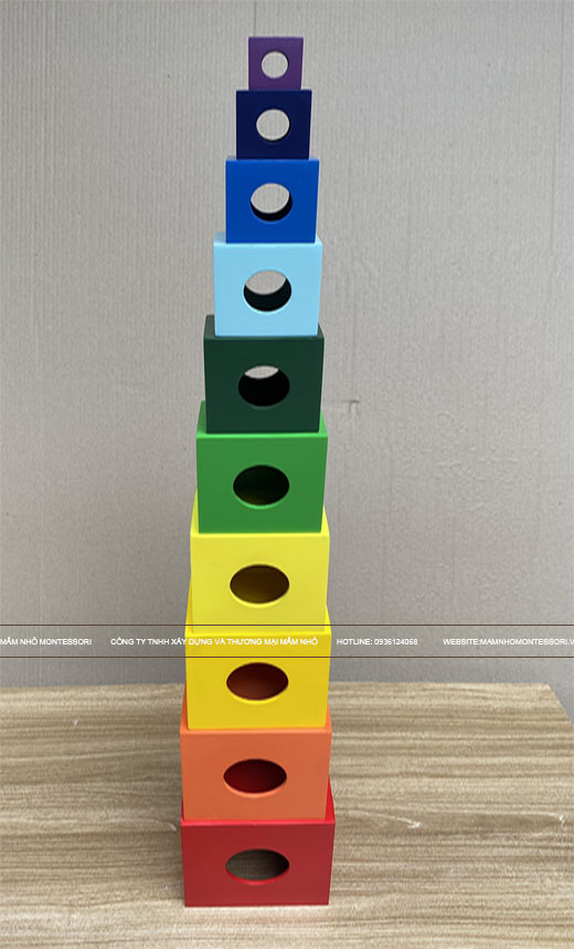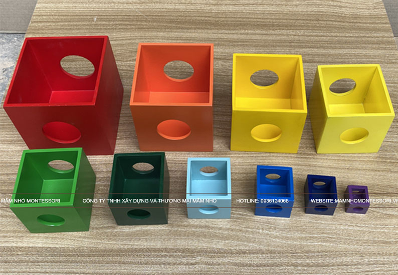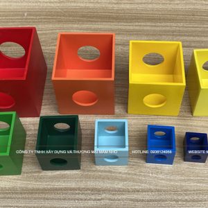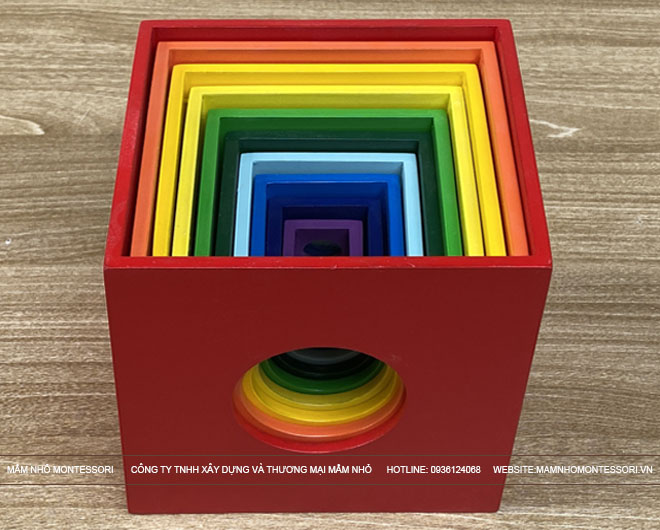 - Lồng hộp vuông 10 là giáo cụ khuyến khích sự phối hợp giữa tay và mắt, học hỏi nhân quả, tính kiên trì