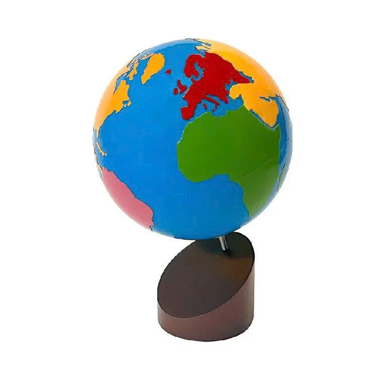 Sau khi làm việc với Quả địa cầu đất và nước, đứa trẻ sẽ chuyển sang Quả địa cầu các châu lục.