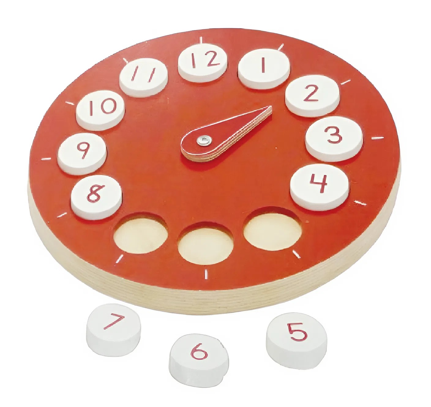 Giáo cụ xếp hình đồng hồ này sẽ là công cụ hiệu quả để bạn giúp bé nhận biết dãy số từ 1 – 12. Biết vị trí sắp xếp của các số và kim đồng hồ, dạy bé cách xem đồng hồ. Giúp bé phát triển các nhóm cơ nhỏ ngón và bàn tay, tăng cường khả năng phối hợp tay mắt cho bé, rèn luyện khả năng tập trung và tư duy logic.