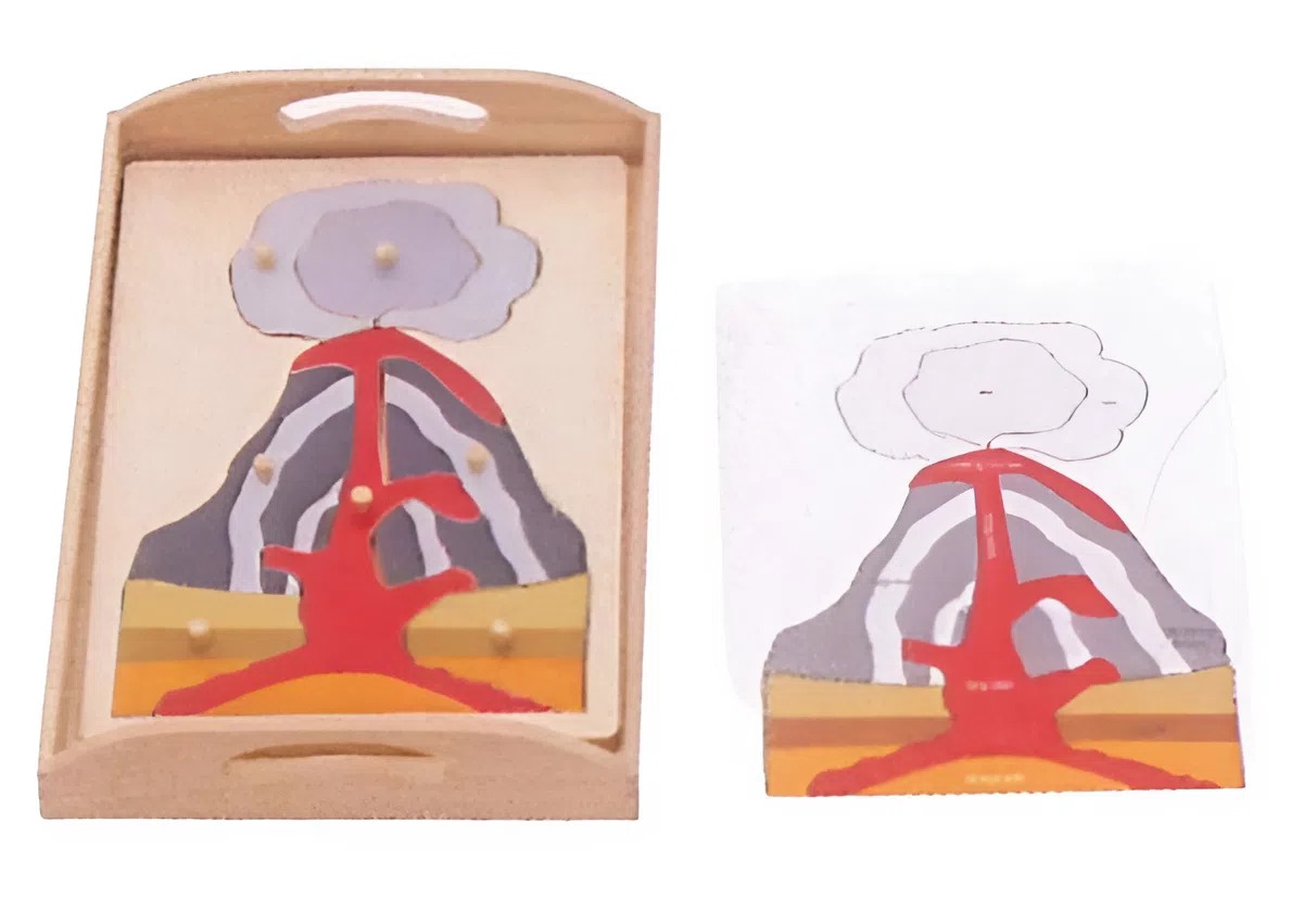 Giáo cụ xếp hình núi lửa loại gỗ bằng tiếng anh đã bao gồm hướng dẫn giúp giới thiệu cho trẻ về cấu tạo của núi lửa, hiện tượng phun trào núi lửa. Có thể áp dụng bài học thú vị hơn bằng việc thí nghiệm thực tế. Giúp trẻ biết đước các phần của núi lửa. Rèn và phát triển giác quan cho trẻ.